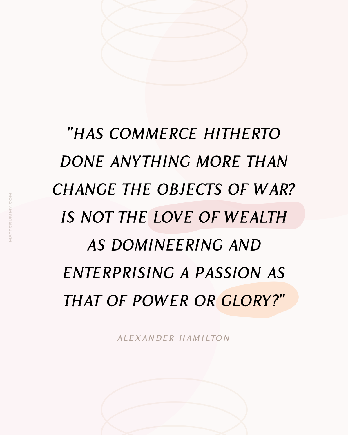 "Has commerce hitherto done anything more than change the objects of war? Is not the love of wealth as domineering and enterprising a passion as that of power or glory?"