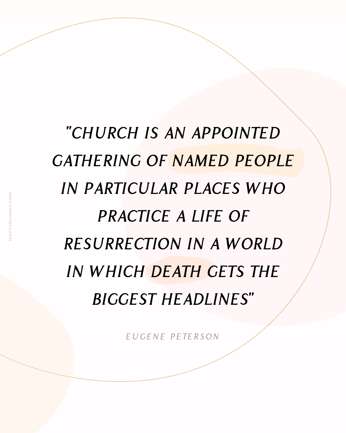 "Church is an appointed gathering of named people in particular places who practice a life of resurrection in a world in which death gets the biggest headlines..."
