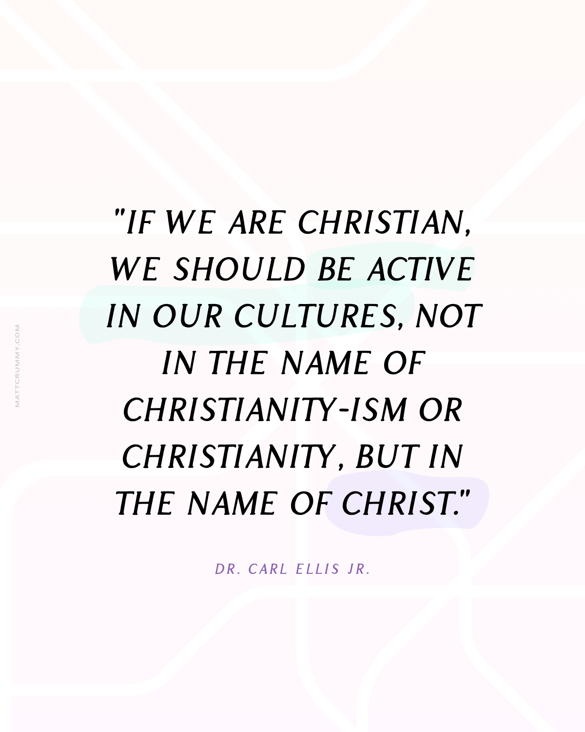 "If we are Christian, we should be active in our cultures, not in the name of Christianity-ism or Christianity, but in the name of Christ."