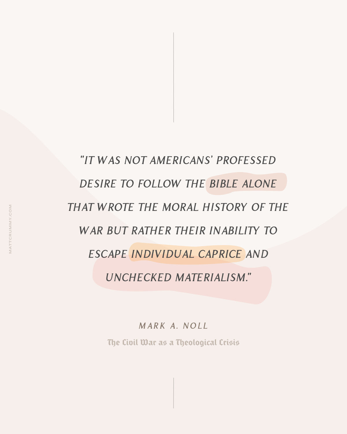 "...it was not Americans’ professed desire to follow the Bible alone that wrote the moral history of the war but rather their inability to escape individual caprice and unchecked materialism."